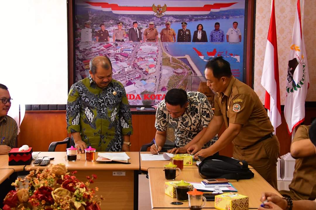 Gunungsitoli, Badan Pengawas Pemilihan Umum Kota Gunungsitoli dan Pemerintah Kota Gunungsitoli secara resmi tandatangani Naskah Perjanjian Hibah Daerah (NPHD) Dana Pilkada tahun 2020 yang dilaksanakan di Ruang Rapat Walikota Gunungsitoli, Senin (4/11/2019).
