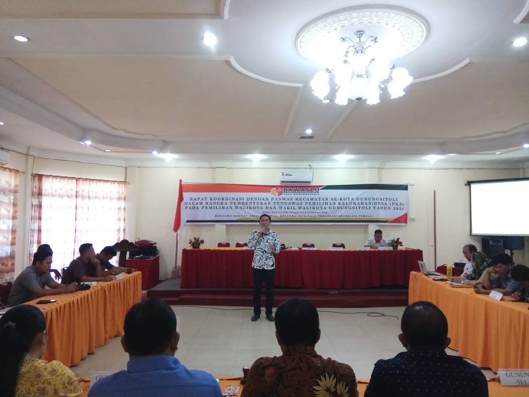 BAWASLU KOTA GUNUNGSITOLI GELAR RAPAT KOORDINASI PEMBENTUKAN PENGAWAS KELURAHAN/DESA (PKD) PADA PILKADA 2020.