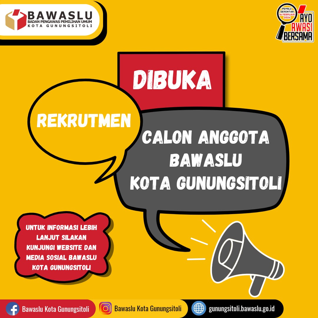 #SahabatBawaslu, Bawaslu membuka Kesempatan bagi Putra-Putri terbaik anak bangsa yang memenuhi persyaratan untuk menjadi bagian dari Bawaslu dalam Mengawal jalannya Demokrasi Pemilu 2024.