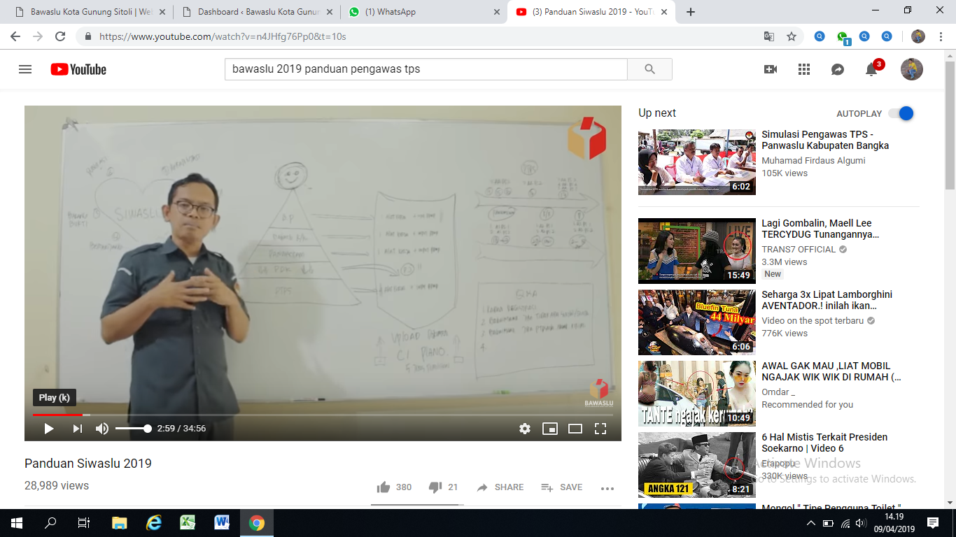 PANDUAN SIWALU 2019 humas | Selasa, April 9, 2019 - 07:23 Tag Uncategorized Video Share Berita Terkini humas Senin, Desember 8, 2025 - 18:10 Bawaslu Kota Gunungsitoli Awasi Rekapitulasi Pemutakhiran Data Pemilih Berkelanjutan (PDPB) Triwulan Ke-IV Tahun 2025. humas Senin, Oktober 27, 2025 - 15:25 Undang sejumlah Tokoh, Ormas Akademisi, Mahasiswa dan Penggiat Pemilu, Bawaslu Kota Gunungsitoli lakukan Penguatan Kelembagaan Pengawas Pemilu Dalam Perspektif Putusan Mahkamah Konstitusi Nomor 104/PUU-XIII/2025, Bersama komisi II DPR RI humas Selasa, Oktober 14, 2025 - 09:00 Dalam rangka membangun karakter pengawas pemilu serta meningkatkan pencegahan pelanggaran sengketa proses pemilu dan pemilihan Bawaslu menyelenggarakan Pendidikan Pengawas Partisipatif Lihat Lainnya