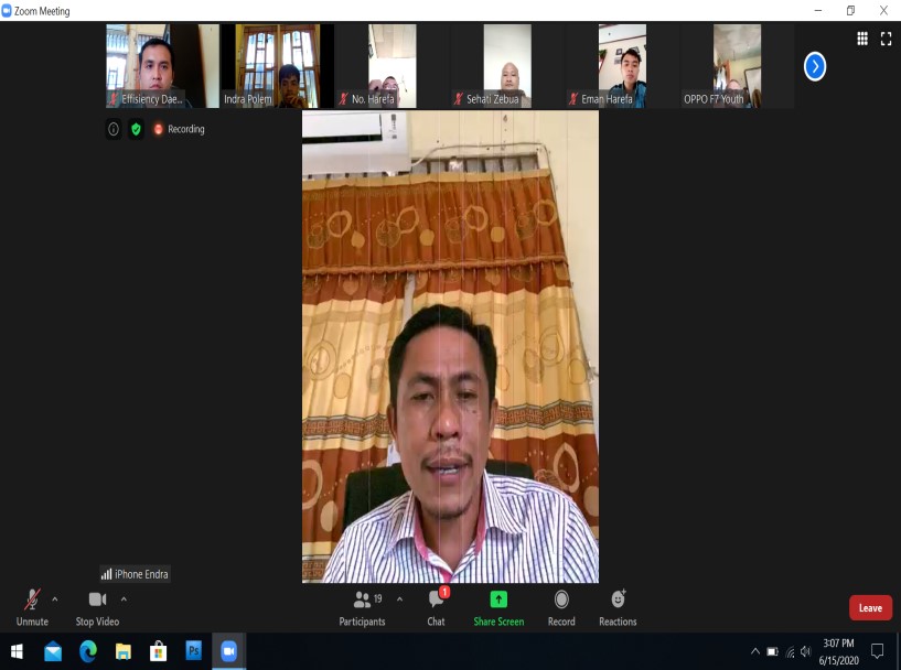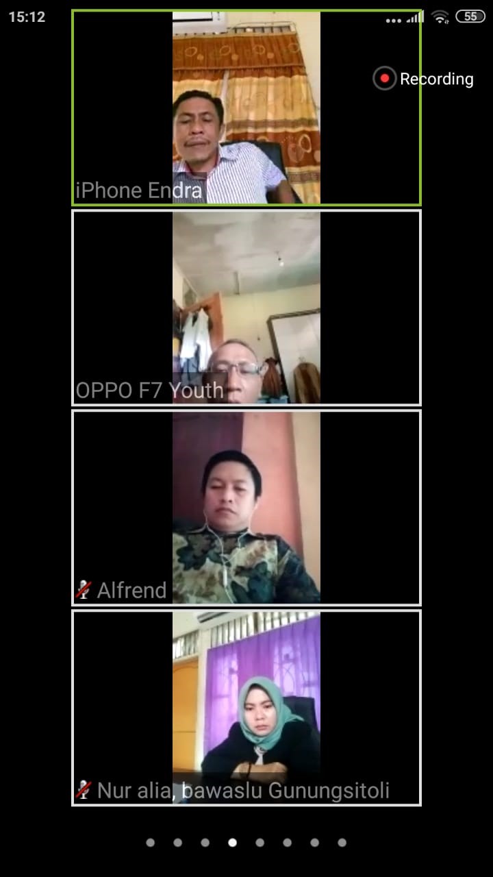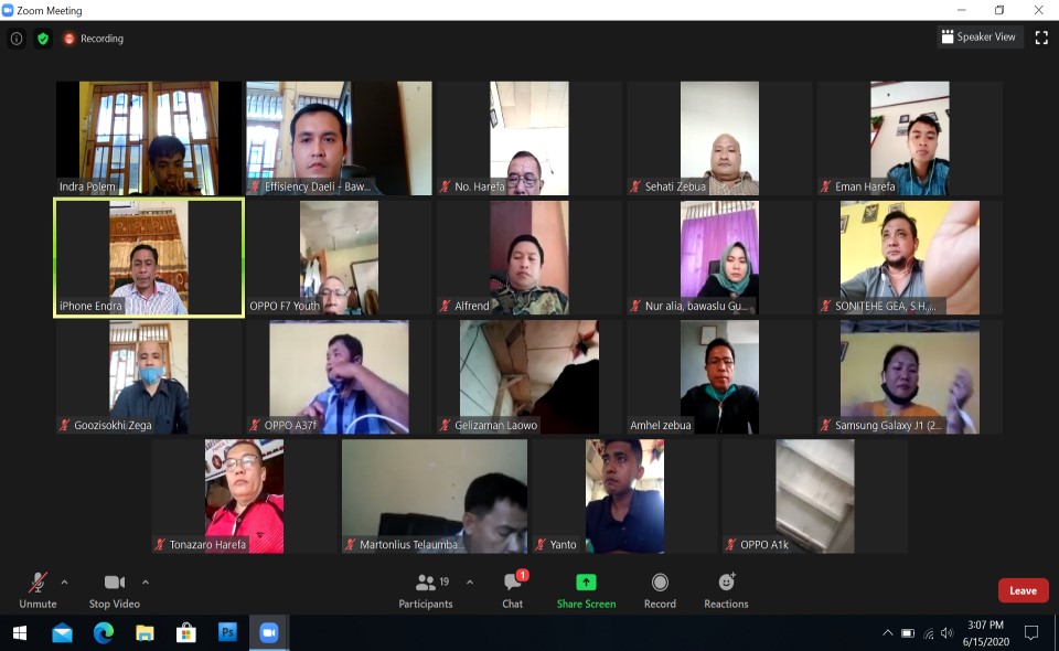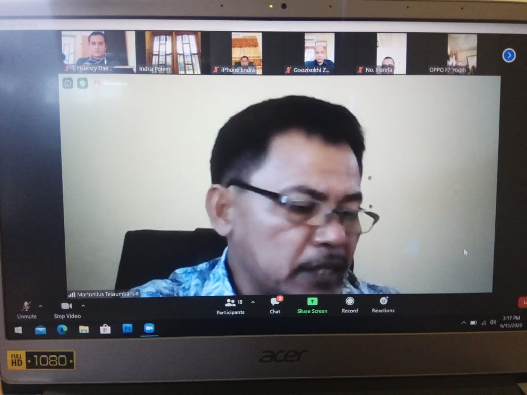 Gunungsitoli, Bawaslu Kota Gunungsitoli - melaksanakan Rapat perdana melalui Meeting Zoom Daring bersama dengan Panwaslu Kecamatan Se-Kota Gunungsitoli dalam rangka pengaktifan Panwaslu Kelurahan/Desa pada Pemilihan Walikota dan Wakil Walikota Gunungsitoli Tahun 2020. Senin (15/06/2020).