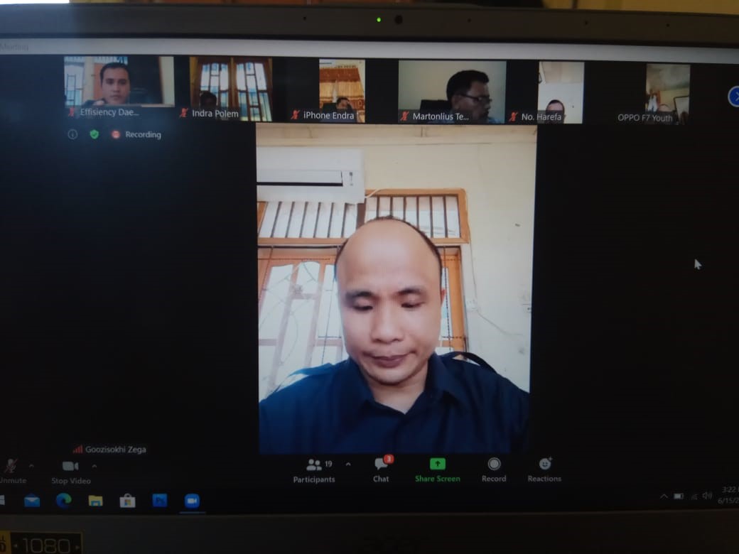 Foto : Koordinator Sekretariat Bawaslu Kota Gunungsitoli pada zoom meeting bersama Panwaslu Kecamatan Se-Kota Gunungsitoli