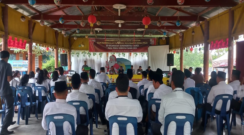 Pengawas Kelurahan/Desa yang dilantik mengambil sumpah janji sekaligus penandatanganan fakta integritas yang dipimpin langsung oleh masing-masing Ketua Panwaslu Kecamatan.