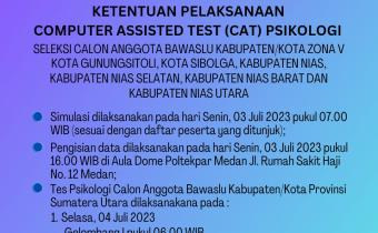 Berikut disampaikan jadwal, Lokasi Ujian Tes Psikologi Calon Anggota Bawaslu Kabupaten/Kota Zona V Sumut....